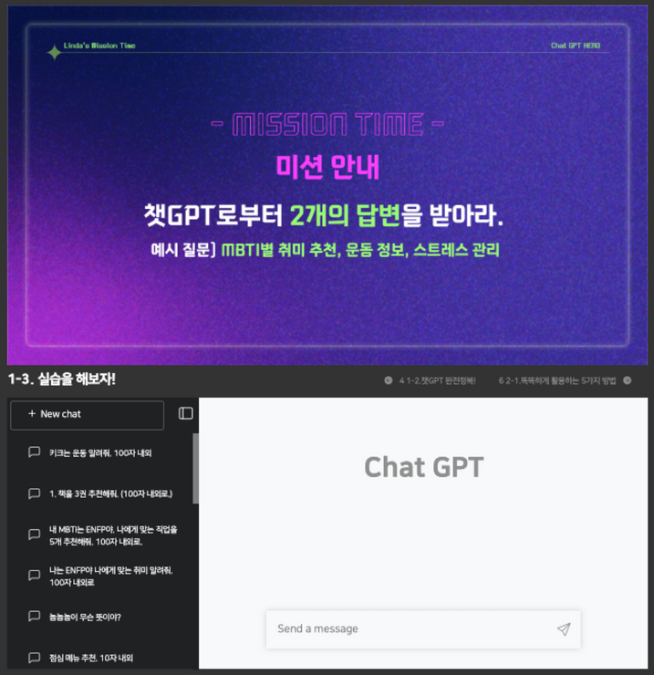 생성형AI 챗GPT의 개념을 이해하고 이를 학교 생활 및 학업에 활용하는 방법 습득, AI 도구를 통한 문제 해결 과정 체험