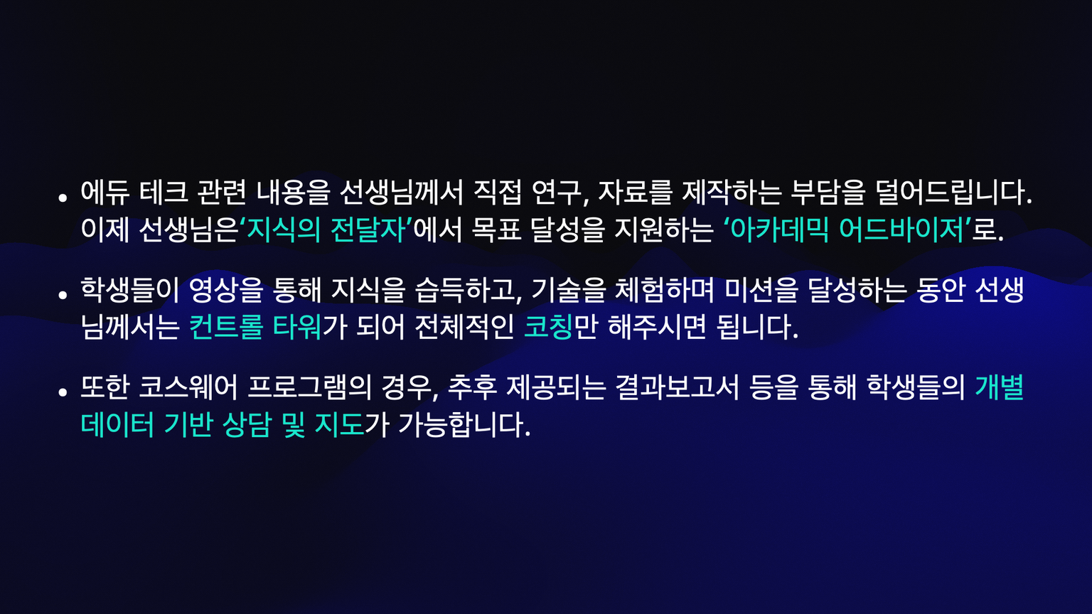 맞춤형 교육을 제공하고, 개인화된 피드백을 지원하는 것을 뜻합니다.