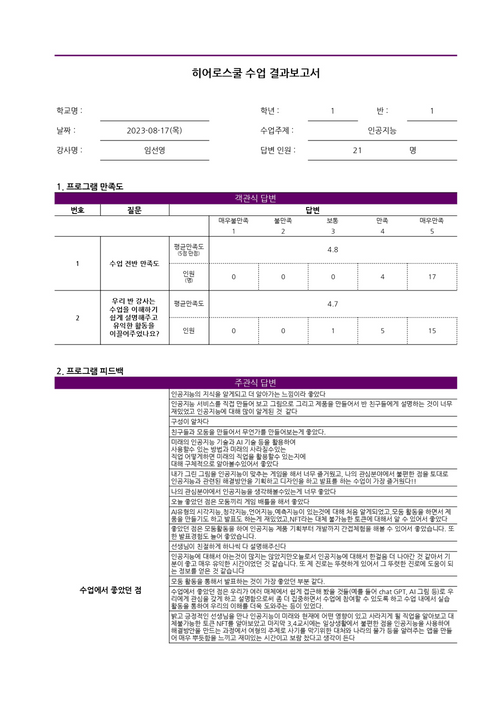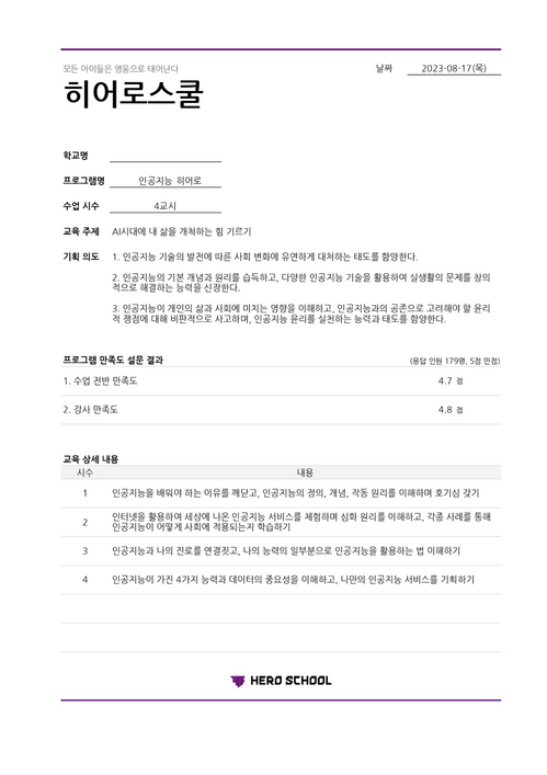 *학생이 개별 수행 프로그램으로 히어로스쿨 강사가 출강하지 않습니다.