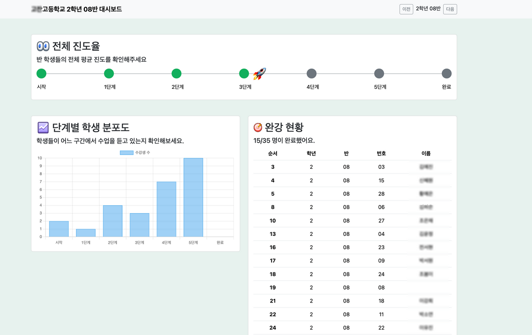 예) 24년 3월 10학급 구매. 3월 1학년 5학급 / 7월 2학년 5학급 진행 가능